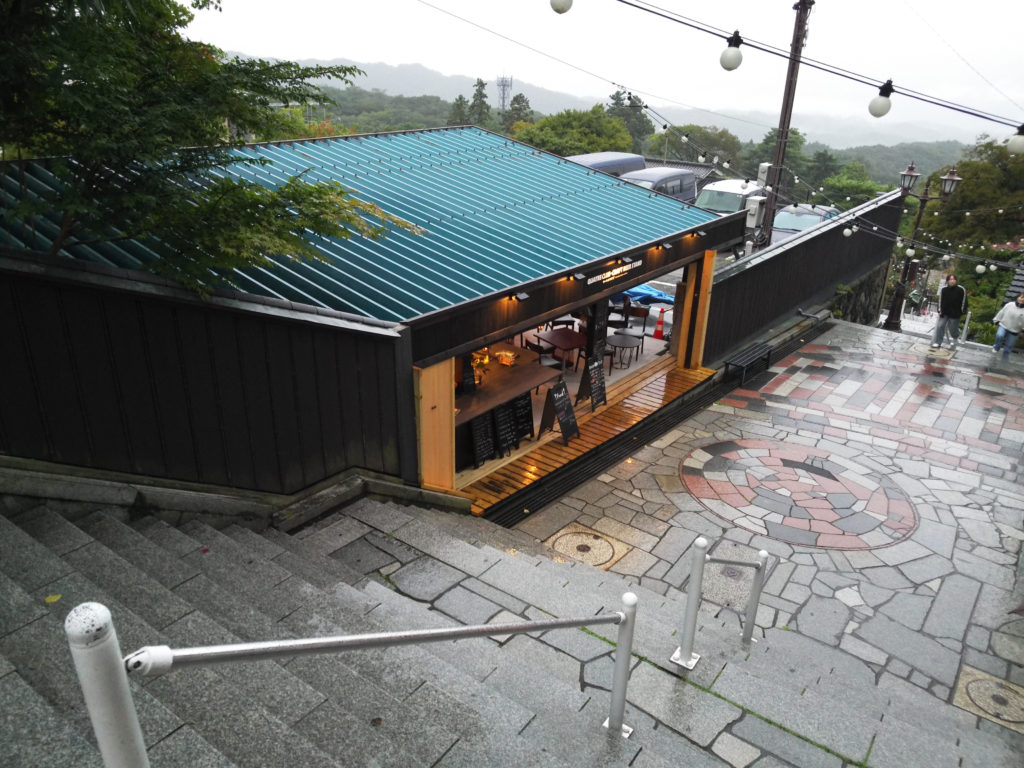 この日は台風が近づく雨の日だったこともあり人の出は少なめでしたが、その分じっくりと石段の両側のお店を楽しむことができました。温泉街と言えば、やはり射的に温泉饅頭と言いたいところですが、今回はちょっとオシャレなお店を訪れてみました。最初は石段の中ほどにあるカートルクラブです。