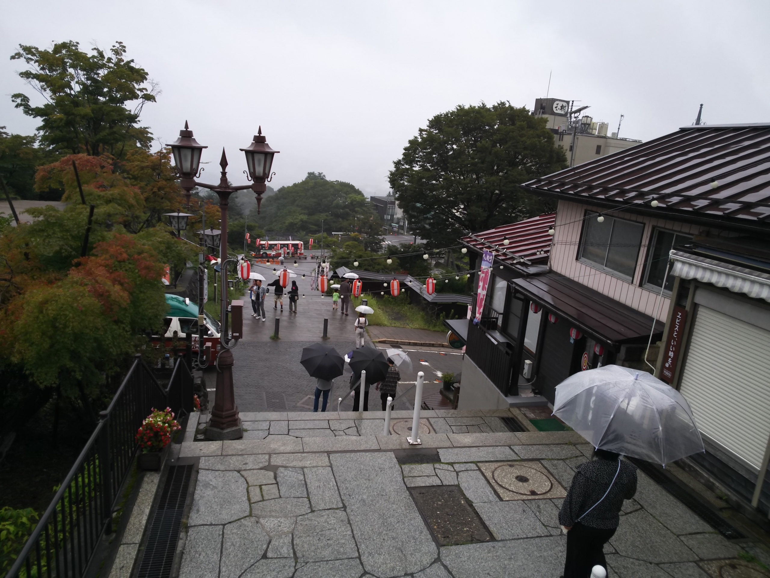 無事お部屋に入れたので、夕食までの時間にあたりを散策してみることにしました。伊香保温泉は石段街とよばれる365段にも及ぶ階段の両側にお店が並び、一番上には伊香保神社があることで広く知られています。周囲には物資を運搬するための道路もありますが、観光を楽しむにはこの石段を昇り降りするしか選択肢がありません。夏にはじわりと汗をかきますので入浴前の散策がお勧めです。